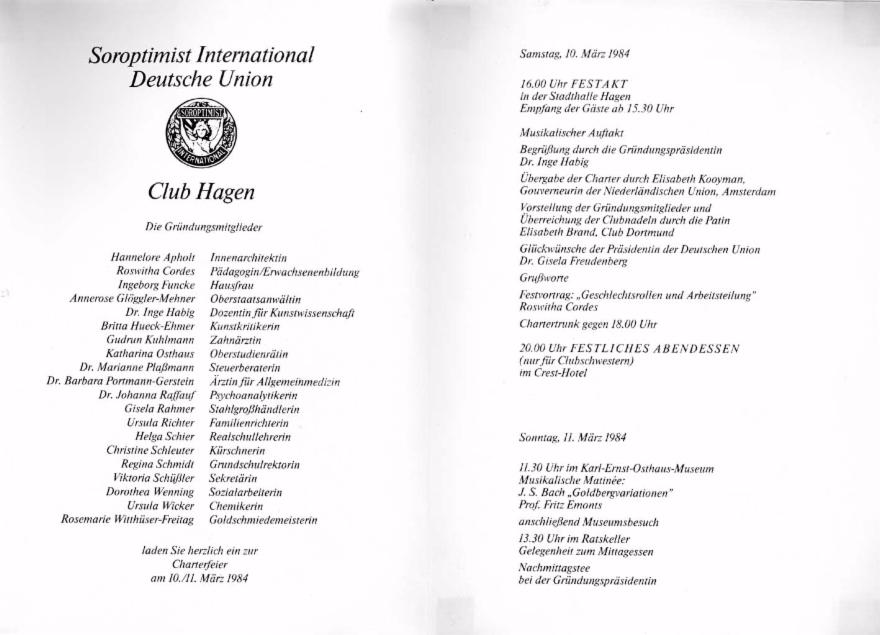 Wir jungen “Sorores optimae“, waren also 1984 in die weltgrößte Service-Organisation von berufstätigen Frauen für Frauen, in die Deutsche Union von Soroptimist International aufgenommen worden.
